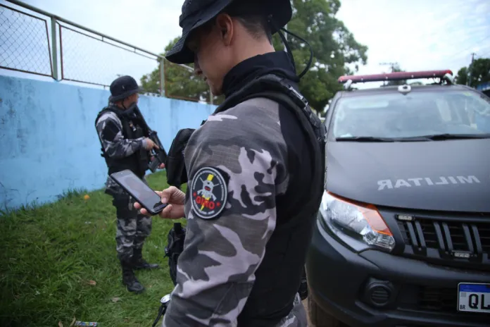 Agente de segurança utiliza drone em operações policiais que necessitem de um monitoramento furtivo e eficiente; além do equipamento, outras tecnologias estão sendo usadas contra a crime; Foto: Dhárcules Pinheiro/Asom Sejusp