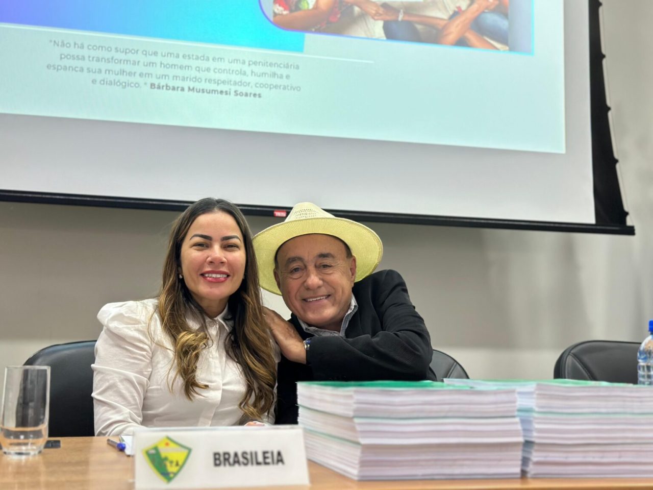 Durante solenidade nesta quarta-feira (29), o prefeito de Rio Branco, Tião Bocalom, passou a presidência da Associação dos Municípios do Acre (Amac) para a prefeita de Brasiléia, Fernanda Hassem.