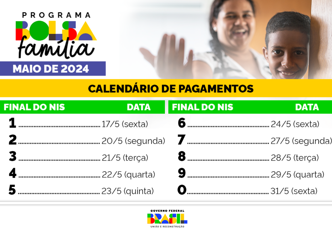 Aqueles que aguardam o pagamento do Bolsa Família devem começar a receber os pagamentos deste mês de maio ainda nesta sexta-feira (17). O pagamento é feito a partir do Número de Identificação Social (NIS) e seguem em ordem numérica, avaliando o último dígito.