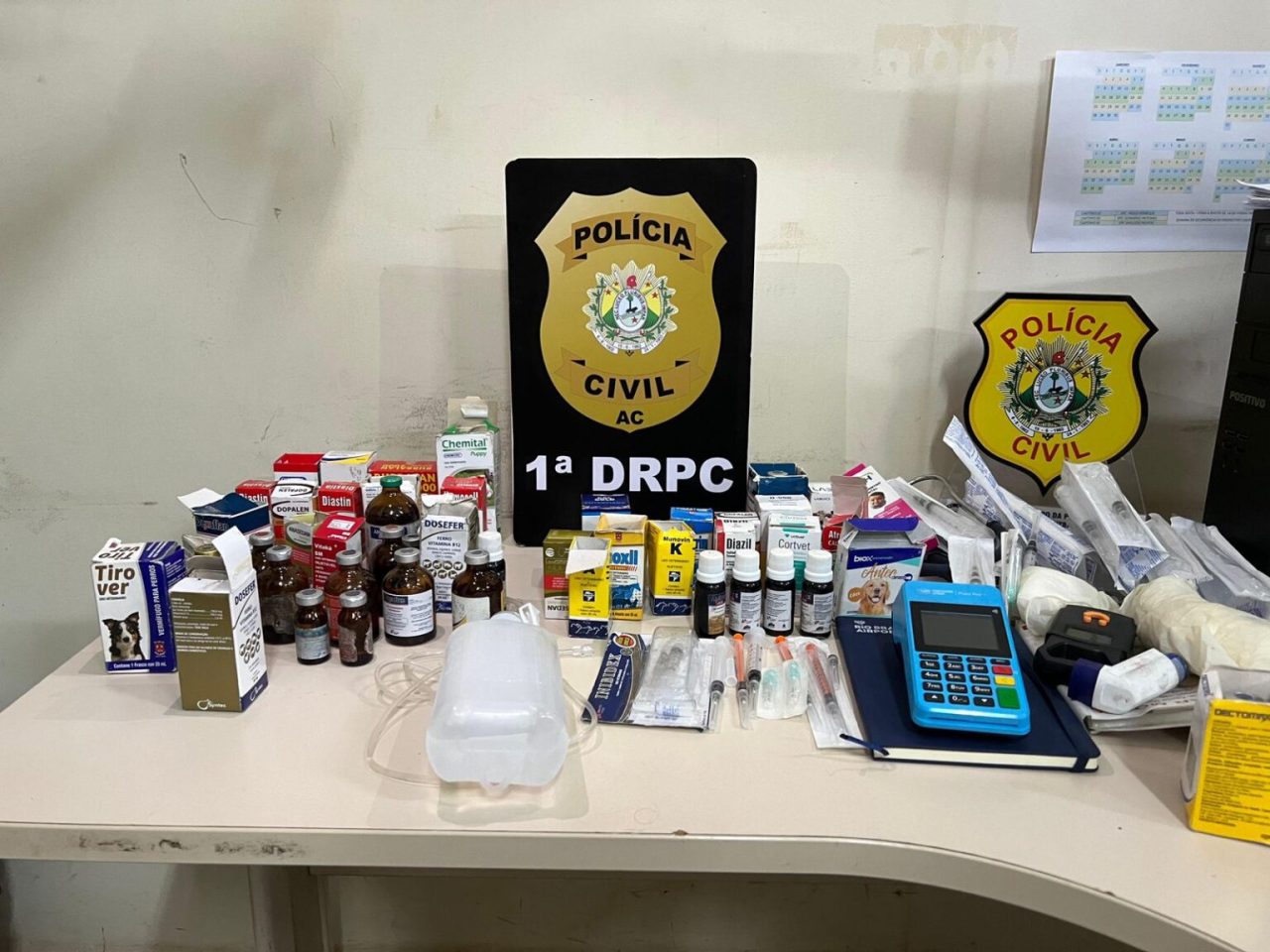 O local foi alvo da operação e duas bolsas do suspeito contendo medicamentos veterinários foram apreendidas. Além disso, a Polícia Civil também informou que durante o cumprimento do mandado de busca e apreensão, as autoridades encontraram o suspeito atendendo de forma irregular.