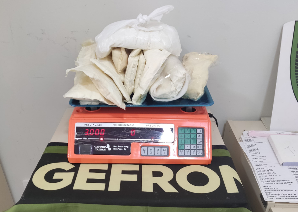 Ao todo, foram encontrados três quilos de cocaína escondidos entre calçados, cuecas e mochilas dos peruanos. Segundo o coronel Cleudo Maciel, coordenador do Gefron, os homens estavam em um táxi que ia de Brasileia a Rio Branco.