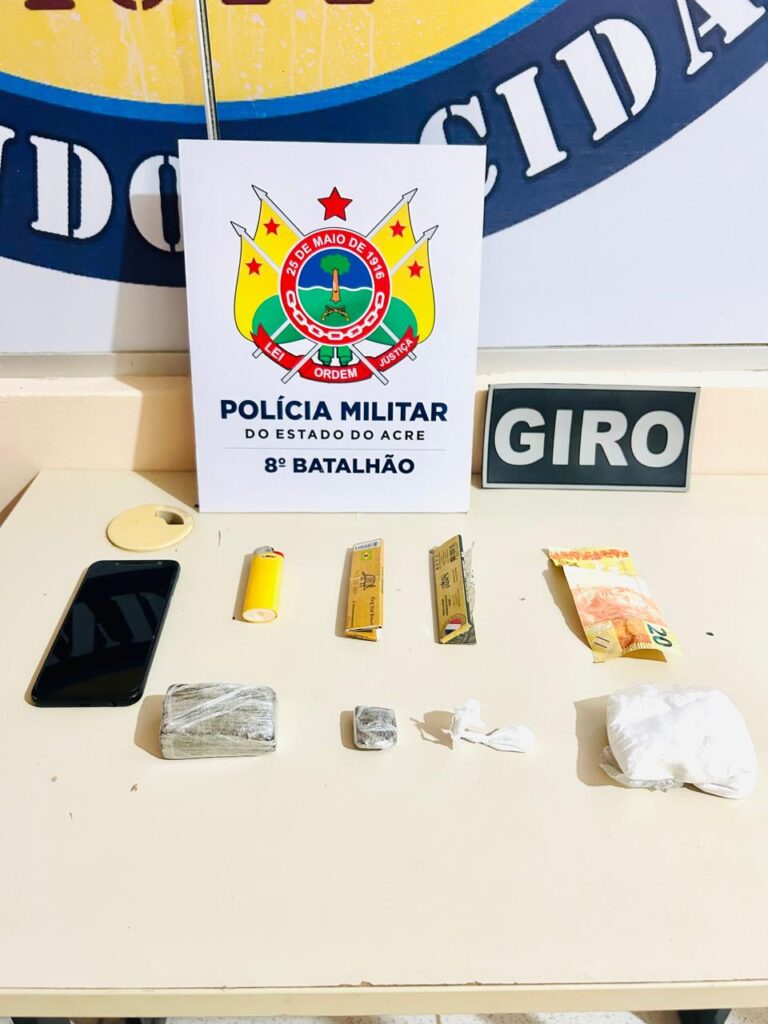 Conforme informações do 8º BPM, ao todo foram encontradas 120 gramas de maconha e cocaína em poder do infrator.