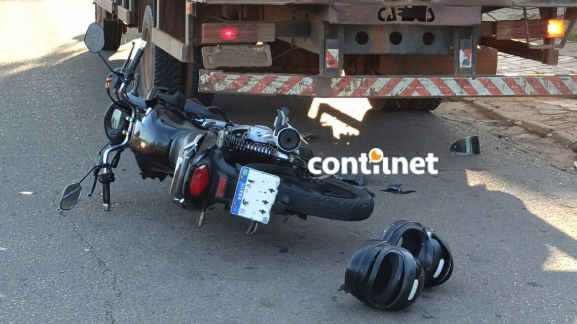 O motociclista João Victor Ferreira de Souza, 22 anos, ficou ferido após colidir contra um caminhão baú na tarde desta quarta-feira (22), na rua Valdomiro Lopes, após a ponte no bairro da Paz, em Rio Branco.