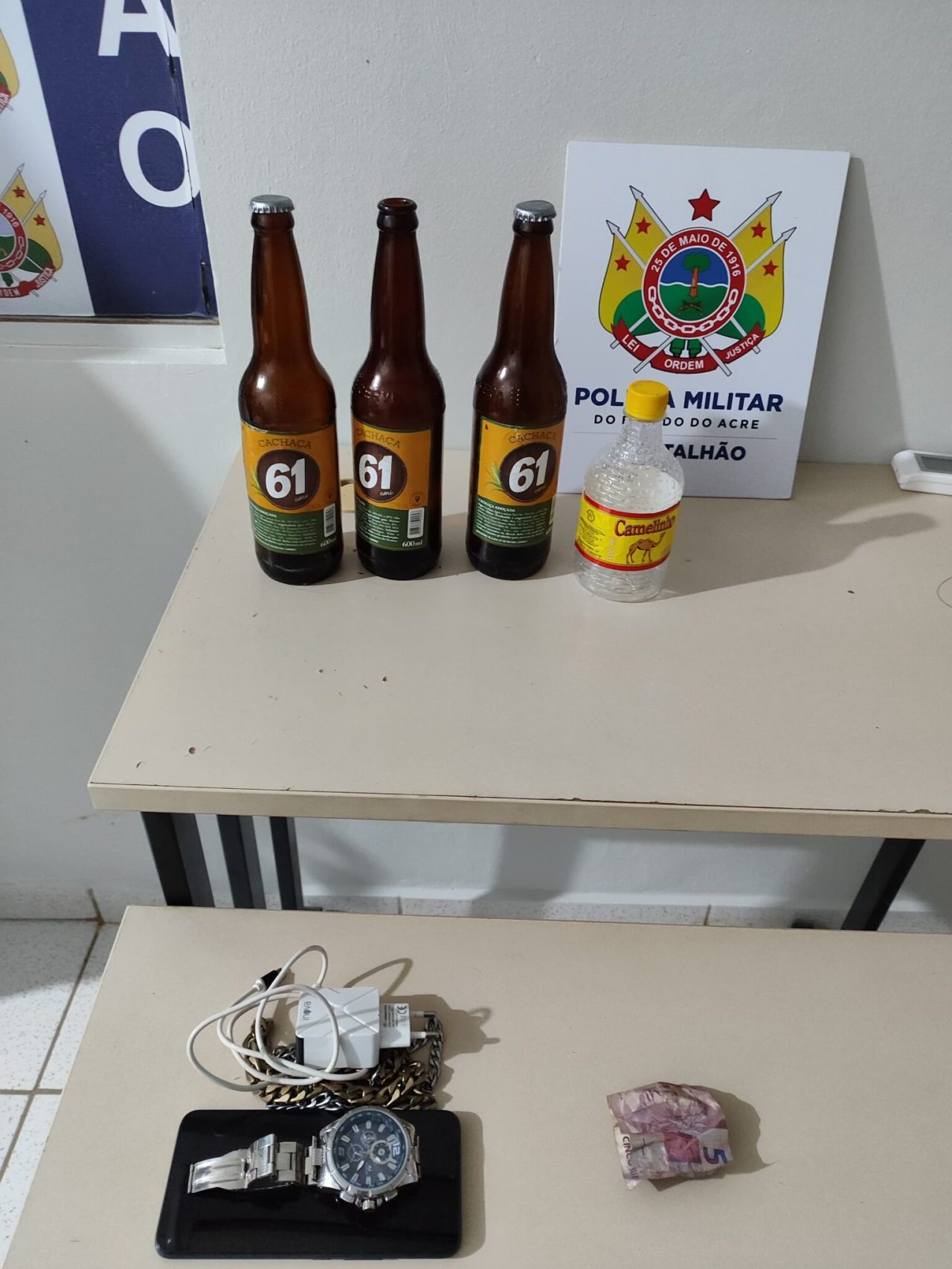 Ao chegarem ao local, os policiais constataram a presença de adolescentes com bebidas alcoólicas. Além disso, entre os detidos estava um indivíduo que era considerado foragido da justiça.
