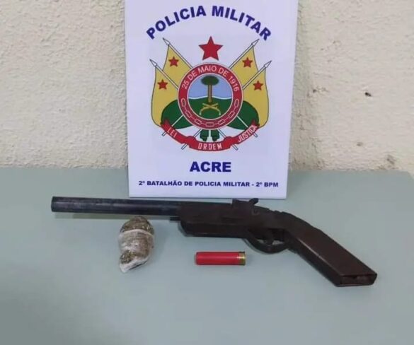 Durante a ação, foi realizada a apreensão de uma escopeta calibre 32 e uma quantidade significativa de maconha em posse do comerciante.