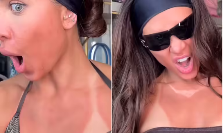 Flavia Pavanelli entrou na trend do ‘tanlines make-up’, uma técnica de maquiagem que imita o tom de pele bronzeada e confere a marquinha de biquíni em qualquer época do ano.