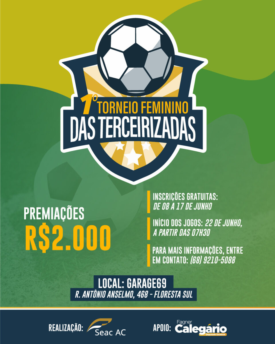 O deputado estadual Fagner Calegário anunciou através de suas redes sociais a abertura das inscrições para o 1º Torneio Feminino de Futebol destinado às trabalhadoras terceirizadas. Com inscrições gratuitas, o torneio tem como objetivo promover a integração, o espírito esportivo e a valorização dessas profissionais.