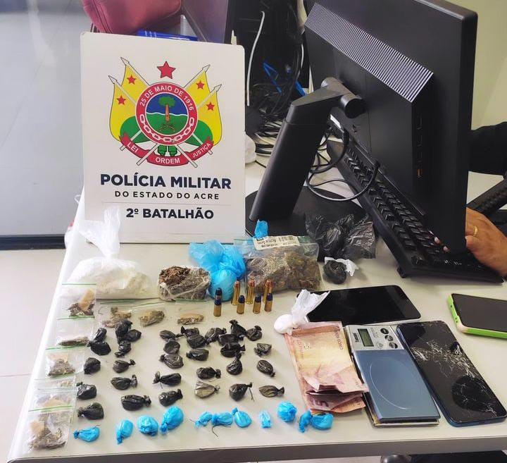 Na tarde da última segunda-feira (3), o 2° Batalhão de Polícia Militar do Acre (2° BPM) realizou a prisão de um foragido da justiça e mais dois indivíduos, incluindo um adolescente, por envolvimento no tráfico de drogas.
