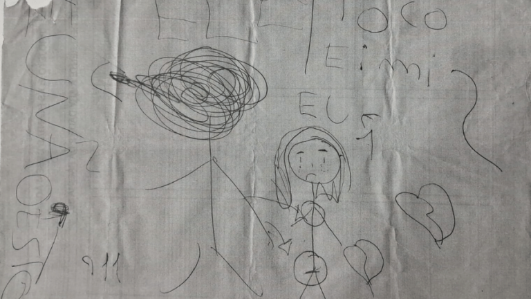 Os desenhos destacavam regiões íntimas do corpo da criança com setas, círculos e frases como “eu não so mais vigis”, “ele toco ei mi”, e “e eu não podia cota para”.