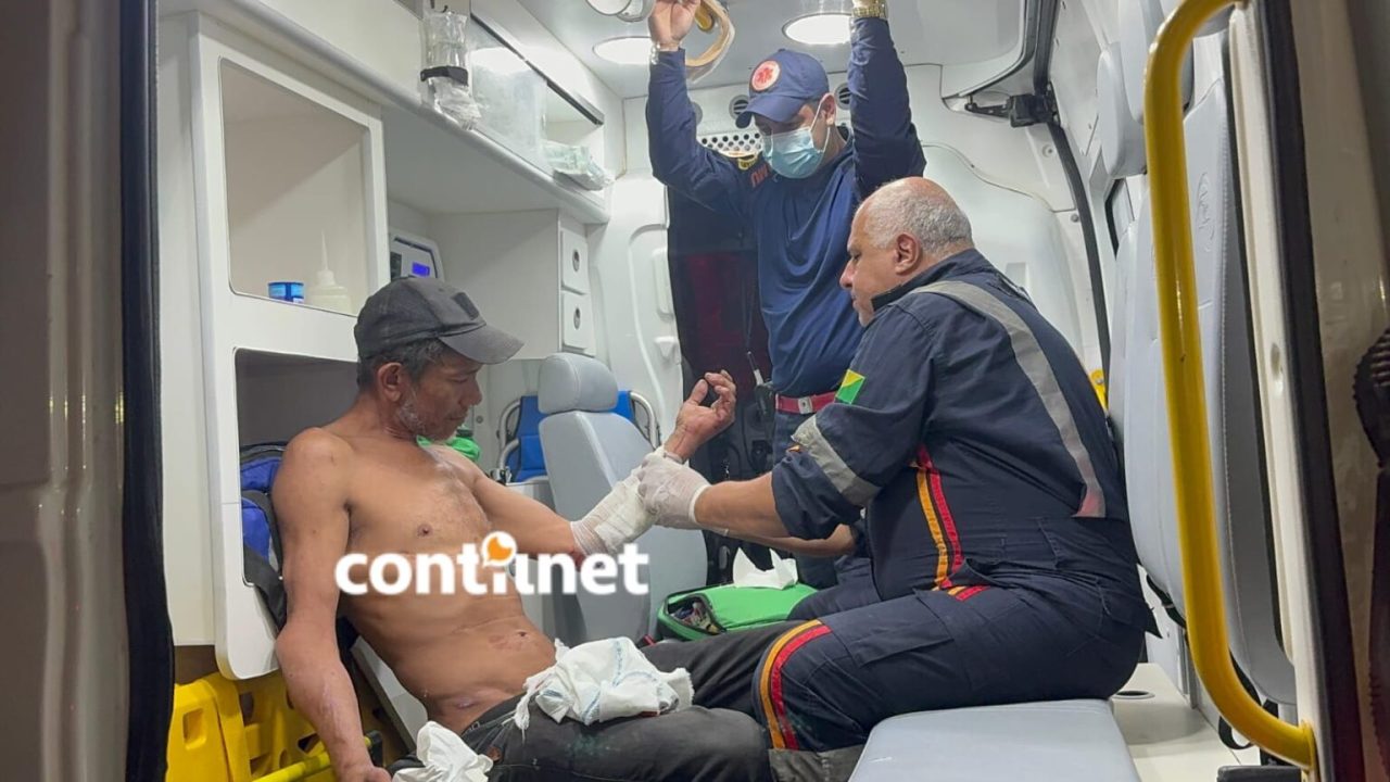 Jean Carlos Silva Paiva, 50 anos, é socorrido por paramédicos após ser vítima de agressão física e golpe de faca/Foto: ContilNet