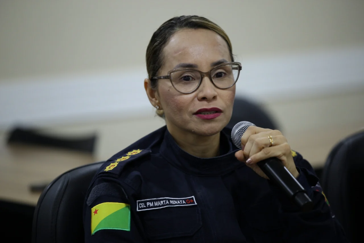 “Ser a primeira mulher a alcançar esse cargo me deixa honrada, pois além de ser uma coroação na carreira é uma quebra de paradigmas na instituição militar”, disse a coronel Marta Renata, primeira mulher a assumir o subcomando da Polícia Militar do Acre (MPAC).