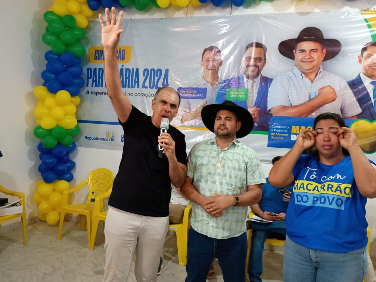 A convenção do partido Republicanos, ocorrida na manhã deste sábado (27) na cidade de Manoel Urbano, também teve um momento de emoção protagonizado pelo ex-prefeito de Sena Madureira, Jairo Cassiano (União Brasil). O evento oficializou a candidatura do pecuarista “Macarrão do povo” à Prefeitura de Manoel Urbano.