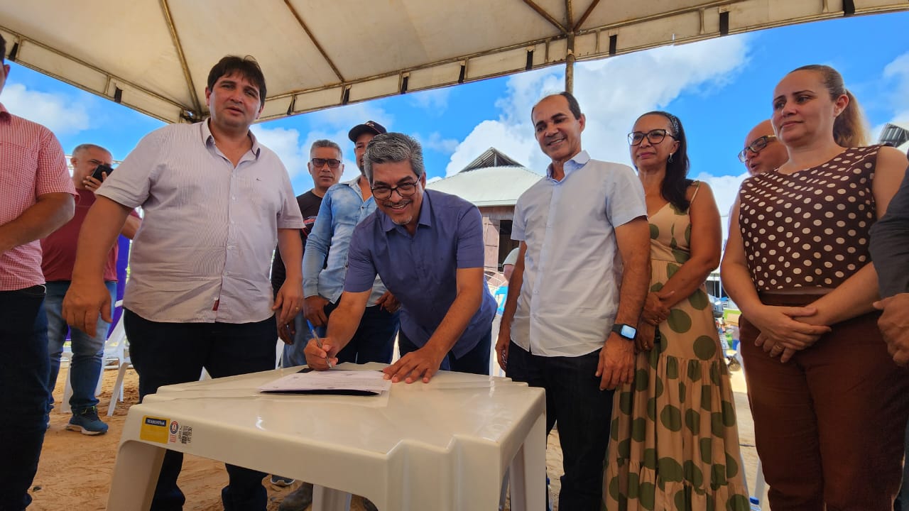 O deputado estadual Edvaldo Magalhães (PCdoB) participou na manhã de hoje (3), em Cruzeiro do Sul, da assinatura da ordem de serviço para construção de uma rampa, calçamento e pavimentação da via de acesso ao Polo Naval de Cruzeiro do Sul. Foto: Juan Vicent Diaz