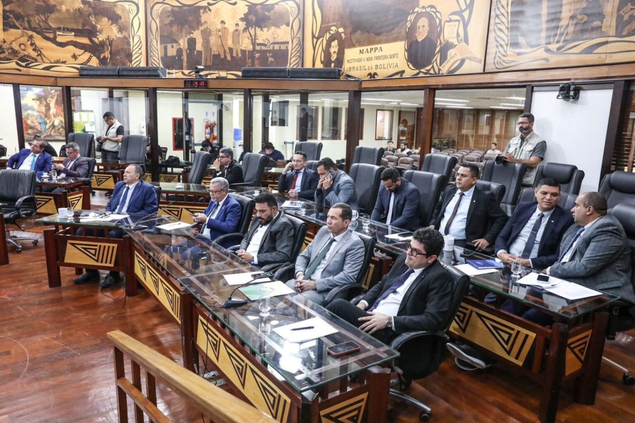Sessão extraordinária na Assembleia Legislativa do Acre (Aleac) aprova projetos para simplificação do licenciamento ambiental e regularização fundiária/Foto: Sérgio Vale