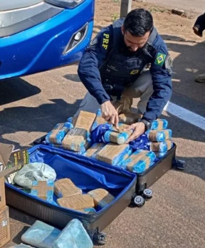 A Polícia Rodoviária Federal (PRF) confiscou aproximadamente 50 kg de maconha e cocaína em um ônibus de excursão que partiu de Rio Branco (AC) com destino a Brasília (DF) neste sábado (27).