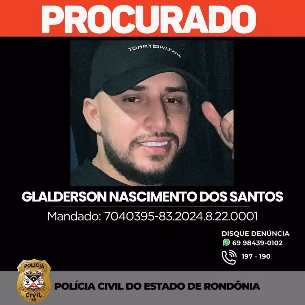 A Polícia Civil de Rondônia divulgou, nas redes sociais, o nome e a foto do homem filmado matando outro em uma conveniência de Porto Velho. Segundo a publicação, Glalderson Nascimento dos Santos não foi encontrado pela polícia e é considerado foragido.