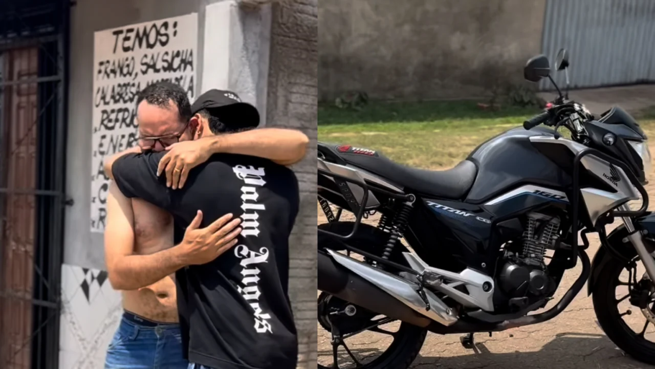 Contudo, a moto utilizada por ele apresentava problemas ‘todos os dias’, o que fez com que o filho decidisse ajudar o pai. Ele financiou uma nova motocicleta e fez uma surpresa.