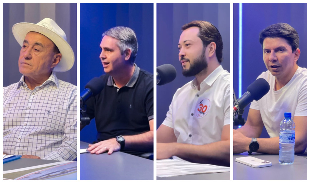 Tião Bocalom, Marcus Alexandre, Emerson Jarude e Jenilson Leite durante entrevista ao Em Cena, podcast do ContilNet/Foto: ContilNet