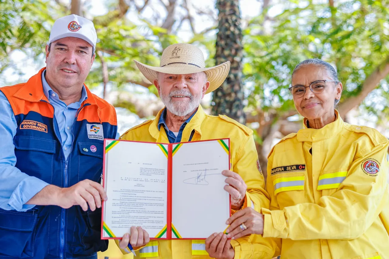 O presidente Lula sancionou a Política Nacional de Manejo Integrado do Fogo na tarde desta quarta-feira (31), durante visita a Corumbá (MS). A nova lei, aprovada no Senado no início deste mês, proíbe o desmatamento com uso de fogo, exceto no caso de queima controlada de resíduos de vegetação, e estabelece diretrizes para o uso controlado do fogo. A sanção foi feita após Lula sobrevoar áreas de queimadas no Pantanal, ao lado da ministra Marina Silva, do Meio Ambiente, e do governador do Mato Grosso do Sul, Eduardo Riedel (PSDB).