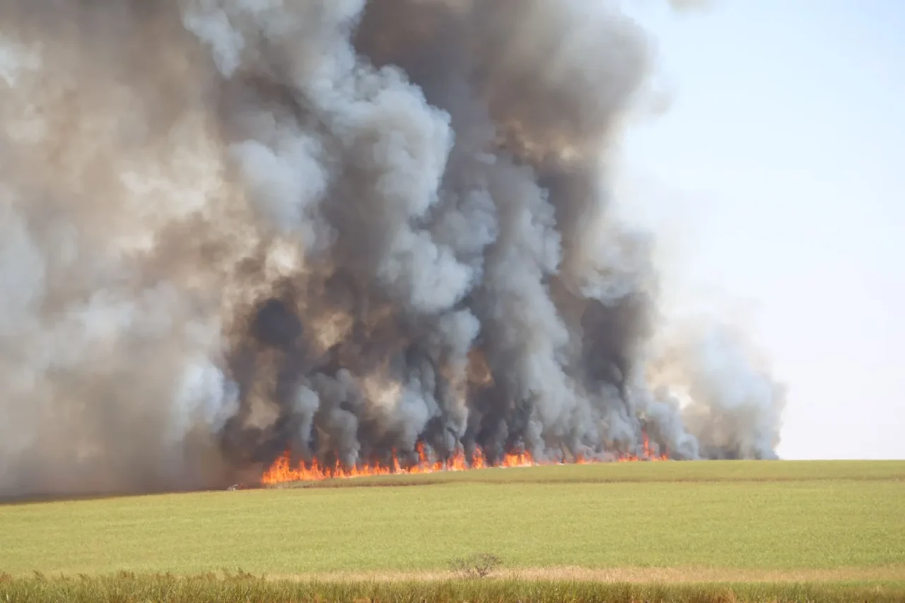 Fogo em canavial cria nuvem de fumaça às margens da rodovia Anhanguera, próxima a cidade de Orlândia-SP, no dia 19 de agosto de 2024. Foto: Celio Messias/UAI Foto/Folhapress