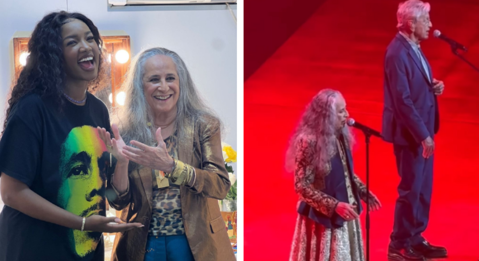 Iza compartilhou o momento em seu perfil no Instagram, onde publicou um texto para agradecer Caetano e Bethânia. “Nenhuma palavra seria suficiente para agradecer, mas vou tentar”, começou ela, na legenda.