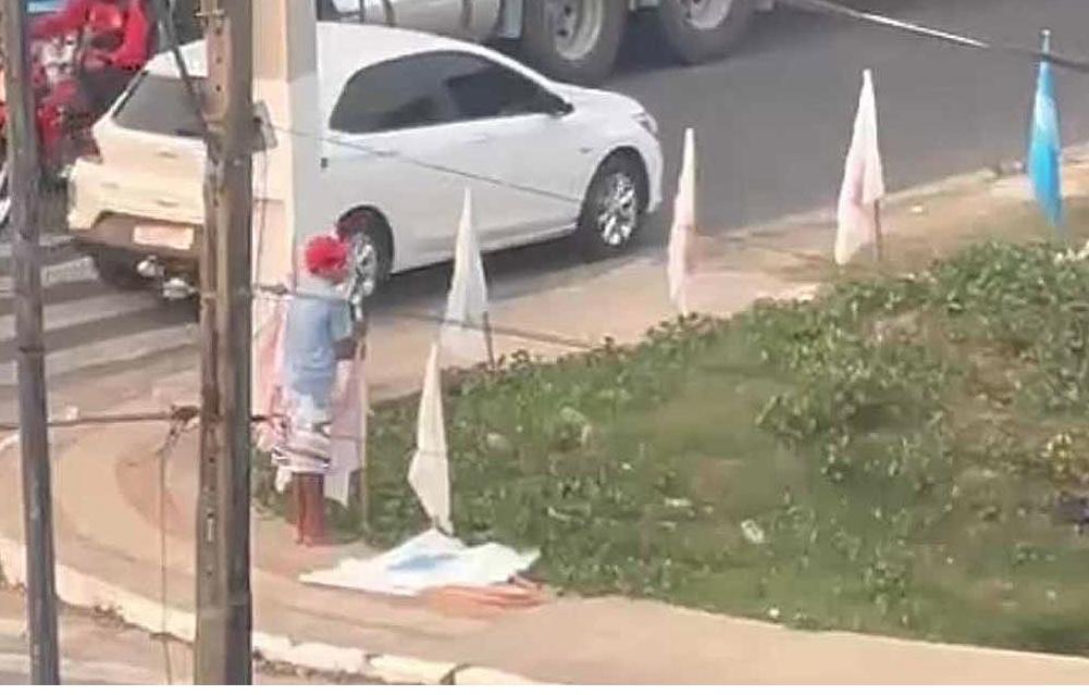 A Justiça Eleitoral ordenou que a candidata à prefeitura de Cruzeiro do Sul, Jéssica Sales, retire bandeiras fixadas em pontos estratégicos da cidade/Foto: Reprodução/Ac24horas