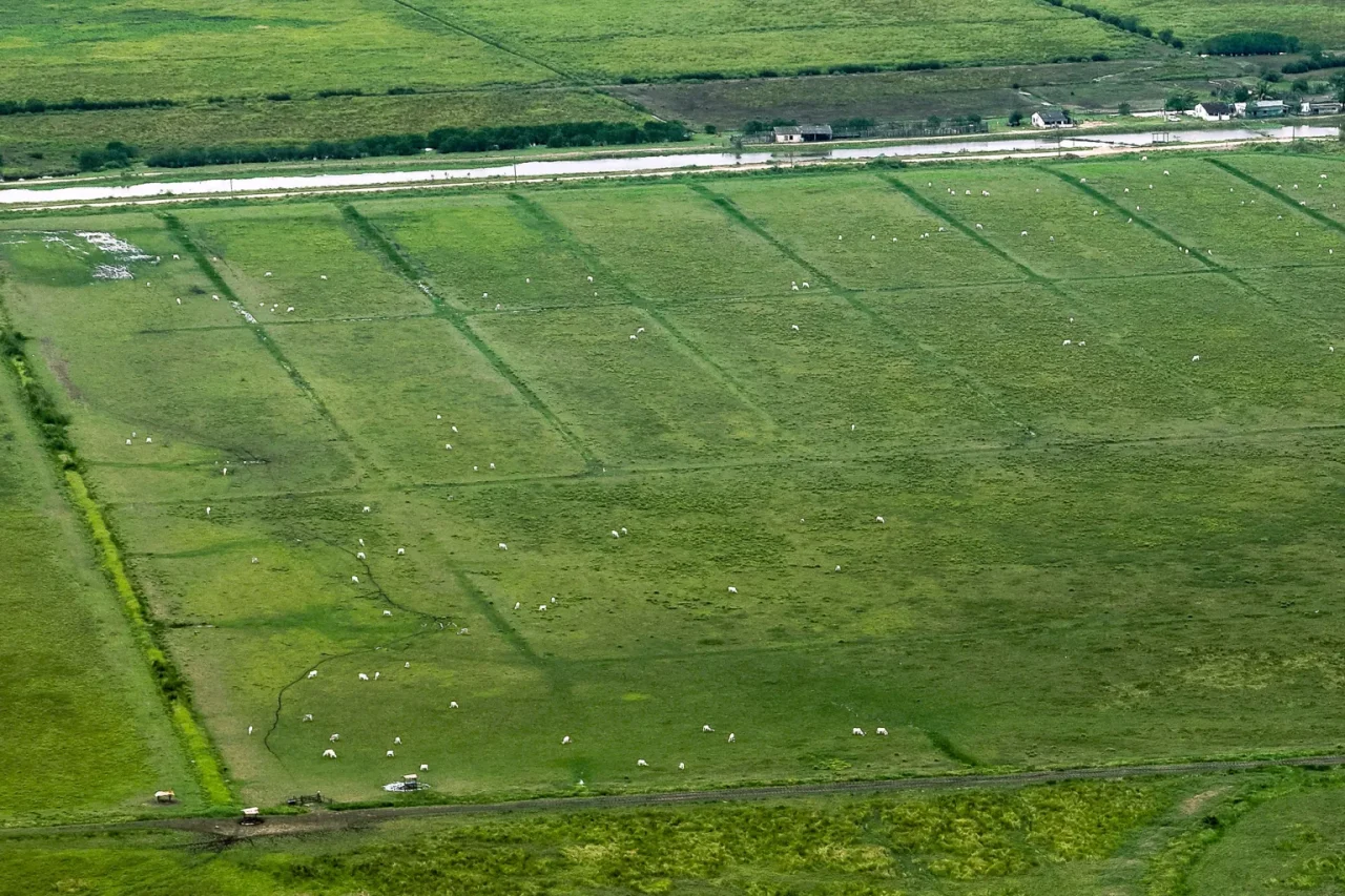 Sobrevoo no Parque Natural Municipal Águas de Guapimirim, uma das condicionantes do licenciamento ambiental, mostra gado no pasto e margens do rio Guapi-Macacu (foto tirada em 31/5/2024). Foto: NGI Guanabara/ICMBio
