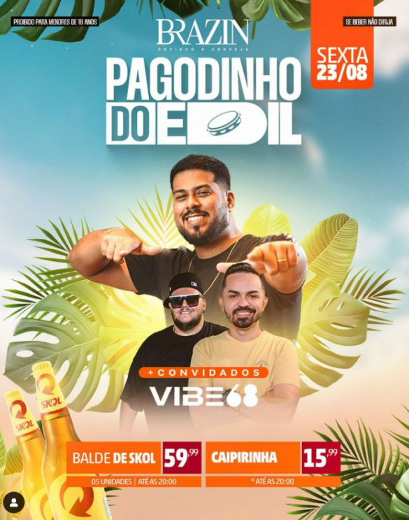 No Brazin, “Pagodinho do Edil” anima a sexta-feira (23) com participação especial de Vibe 68. Promoções de cerveja estão dentro também!