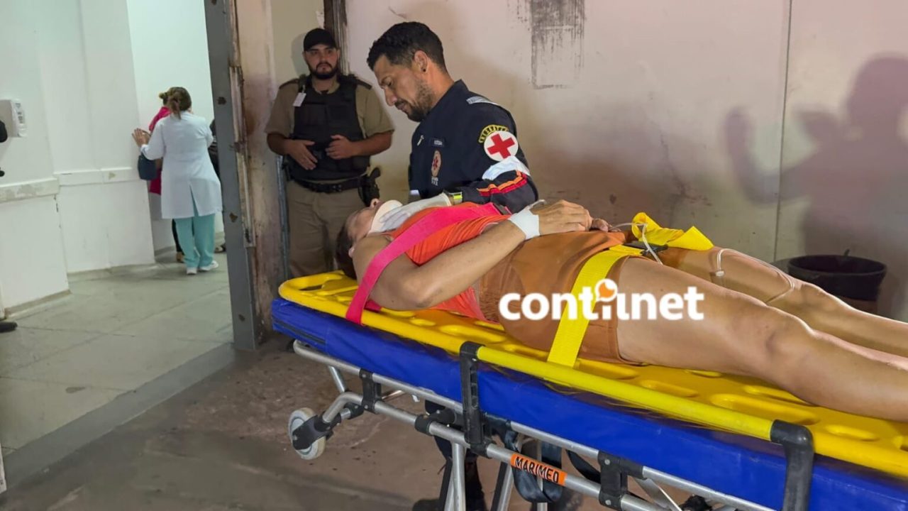 Na queda, a professora ficou com dores nas costelas e na clavícula, com suspeita de fraturas nessas regiões.
