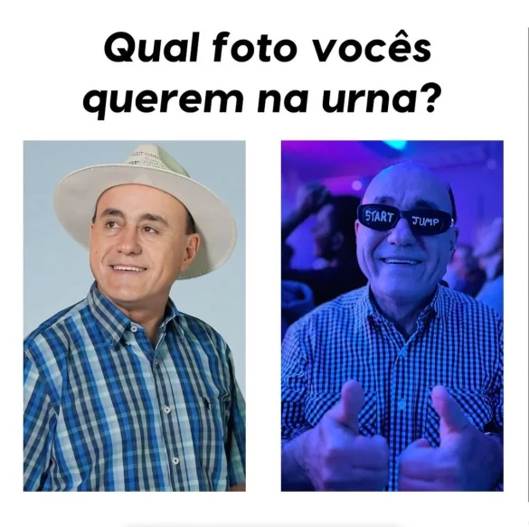 Tião Bocalom diverte seus eleitores com uma postagem divertida no Instagram, mostrando duas opções de foto para a urna eleitoral: uma convencional e outra com óculos ‘start jump’, marcando o início oficial de sua campanha/Foto: Reprodução/Redes sociais