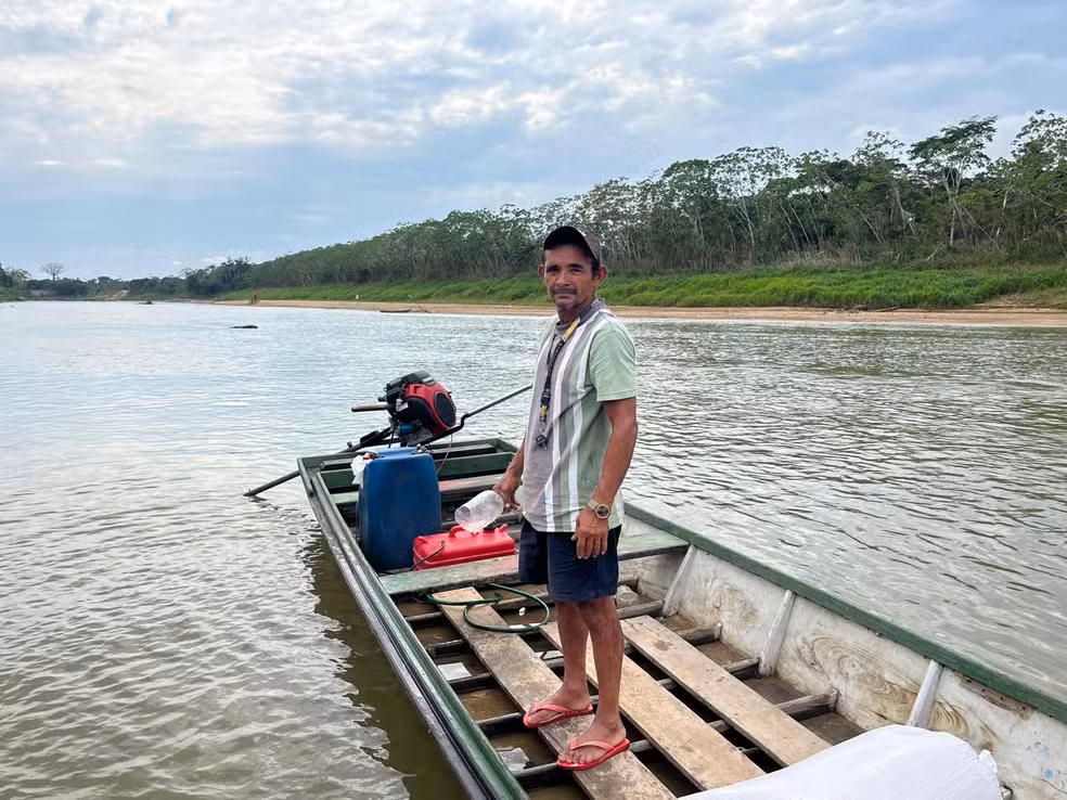 Os produtos vão de barco até uma localização e de lá são levados em pequenas embarcações até a cidade. Marechal Thaumaturgo decretou situação de emergência pela seca.