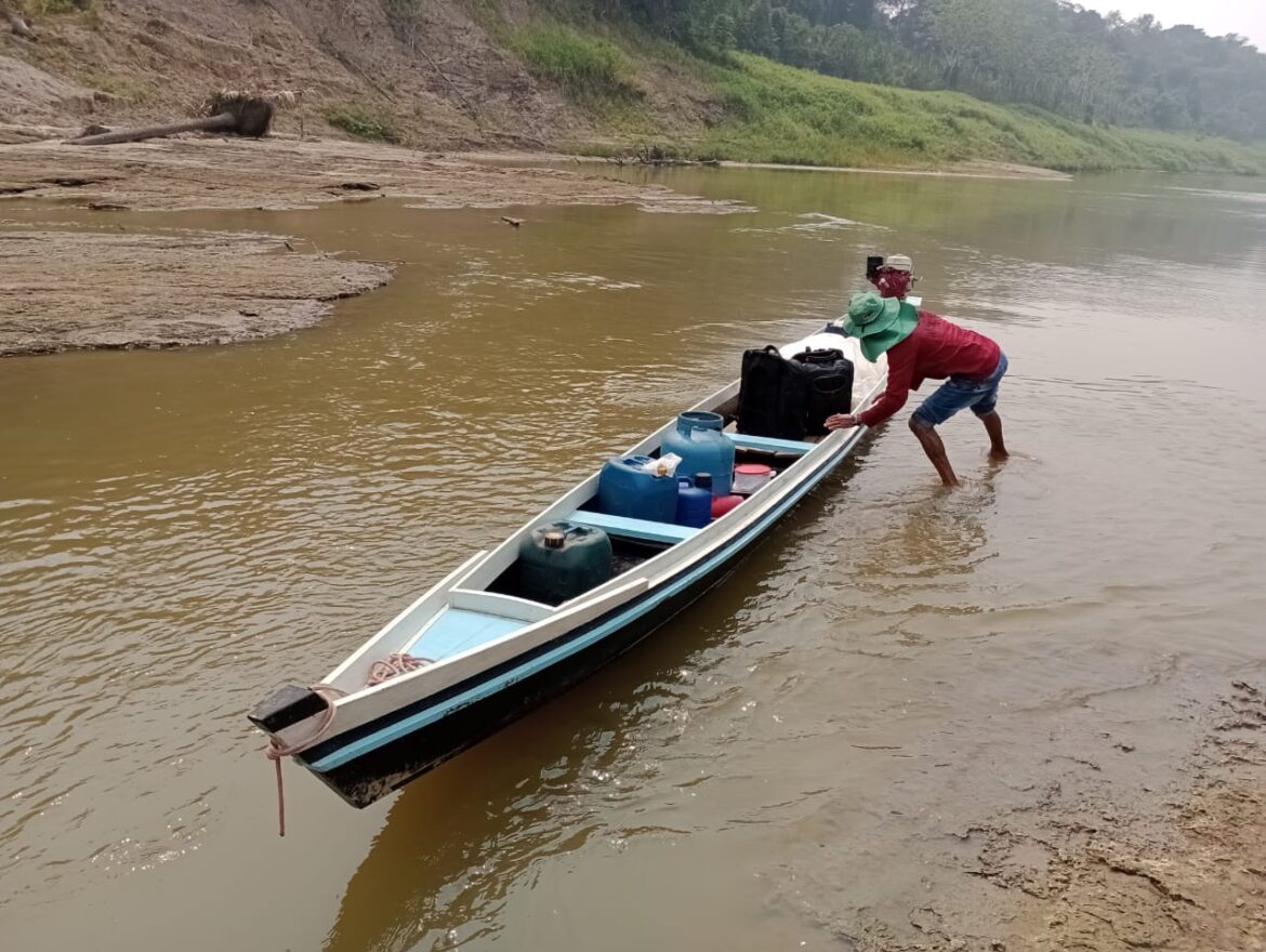 Nesta semana, um morador da comunidade Mariomba foi filmado dentro do rio empurrando sua canoa em um trecho que secou bastante.