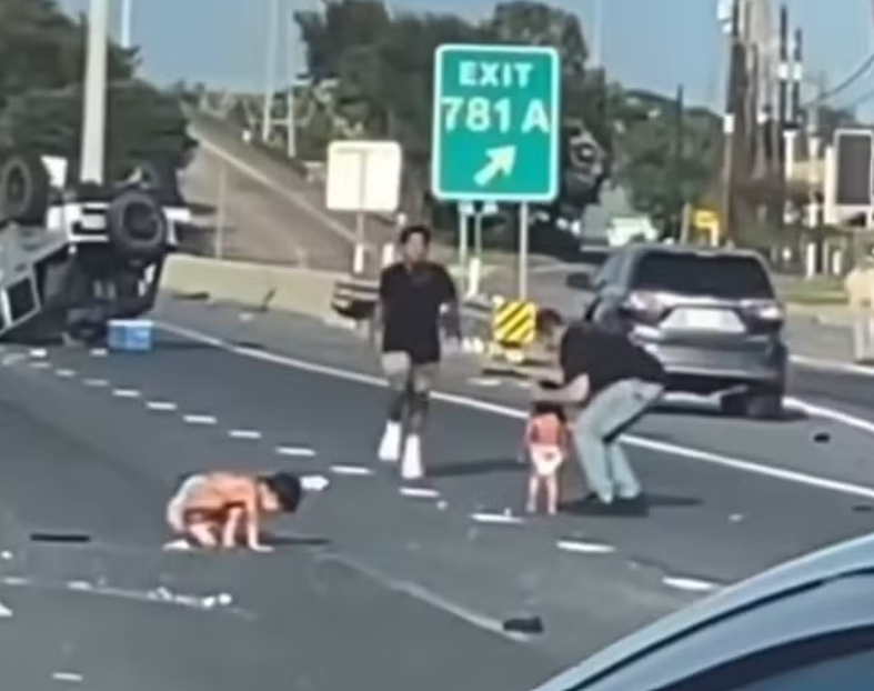 Duas crianças de fraldas foram vistas andando em uma rodovia do Texas, nos Estados Unidos, depois de serem jogadas de um carro que capotou várias vezes durante um acidente.