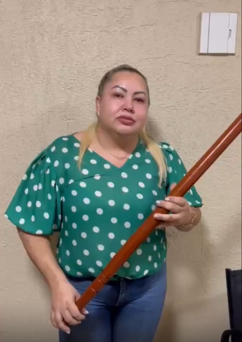Candidata a prefeita Luciana Melo exibe porrete em vídeo após ser perseguida e ameaçada por apoiadores de adversário político; ela afirma que agora irá se defender caso necessário/Foto: Reprodução