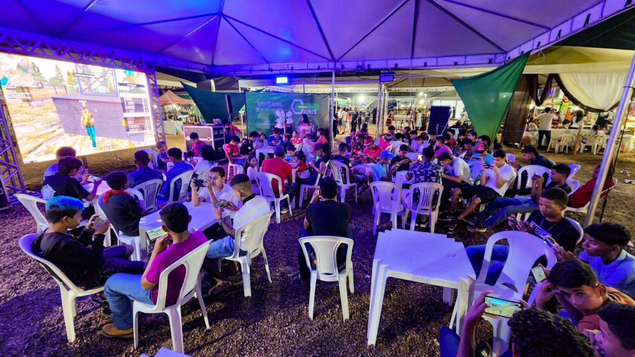 Ambiente vibrante do campeonato de Free Fire na ExpoSena 2024, organizado pelo Espaço Games da SEICT/Foto: Juan Diaz, ContilNet