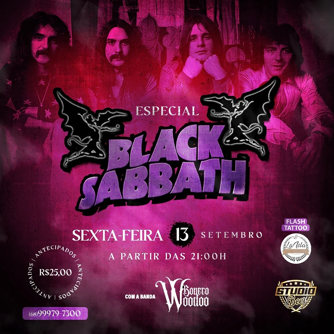 Nesta sexta-feira, 13 de setembro, o Studio Beer anuncia a segunda edição do tributo ao Black Sabbath, desta vez com mais músicas da banda e também parte da carreira solo do Ozzy e Dio. A partir das 21h, o filme “Sexta-feira 13” será exibido antes do show. Ingressos no contato: (68) 99979-7300.