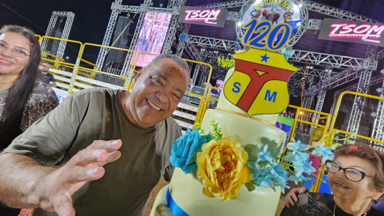 Os parabéns teve direito a bolo gigante na última noite de Exposena/Foto: Juan Diaz/ContilNet