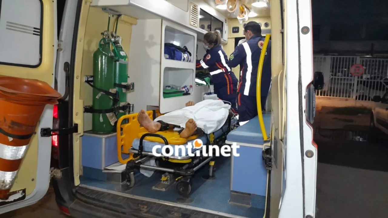 Equipe do Samu realizando os primeiros atendimentos à vítima, baleada no abdômen, em Capixaba/Foto: ContilNet