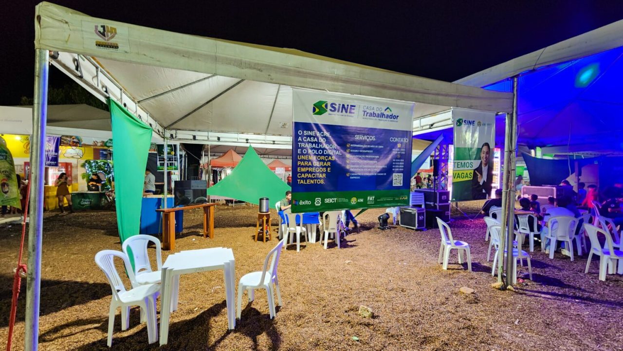 O estande do Sine Acre na ExpoSena 2024 oferece 100 vagas de emprego em uma multinacional, destacando oportunidades de trabalho para senamadureirenses/Foto: Juan Diaz, ContilNet