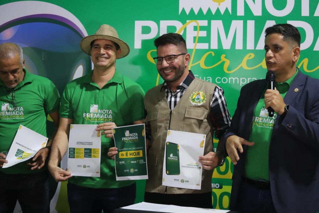 Durante a terceira noite de Expoacre 2024, nesta segunda-feira (2), o governador Gladson Cameli lançou o Programa Nota Premiada, que vai premiar com sorteios o cidadão que pedir a inclusão do CPF na nota fiscal no momento da compra.