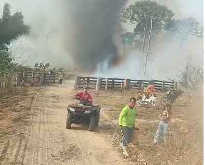 Moradores do ramal do São João, do outro lado do Rio Caeté, no interior de Sena Madureira, fogem de um redemoinho de fogo em vídeo que circulou nas redes sociais na última terça-feira (24).