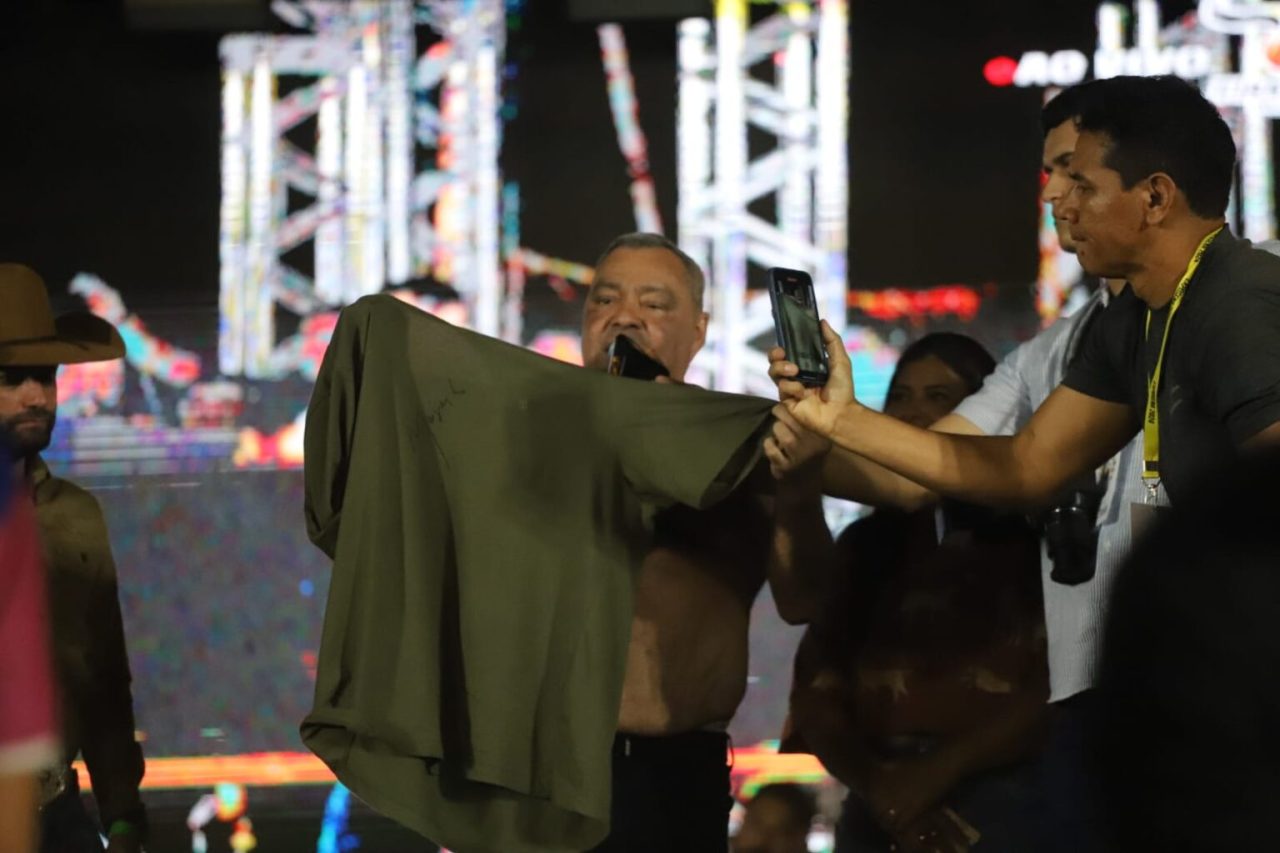 O prefeito Mazinho Serafim, durante um leilão beneficente na Exposena 2024, nesta quarta-feira (25), resolveu tirar a camisa que estava vestido, autografar e doar para arrecadar fundos para a Apae de Sena Madureira.