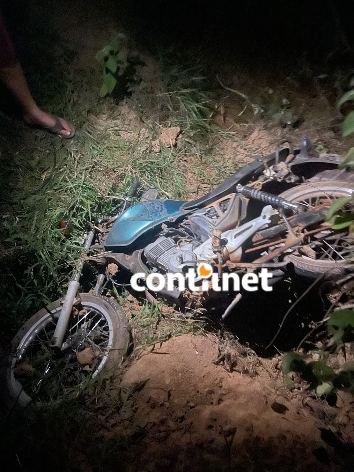 Motocicleta de Jocicleiton Teixeira após o acidente no Ramal Granada; colisão com caminhonete resultou em graves ferimentos no piloto/Foto: ContilNet