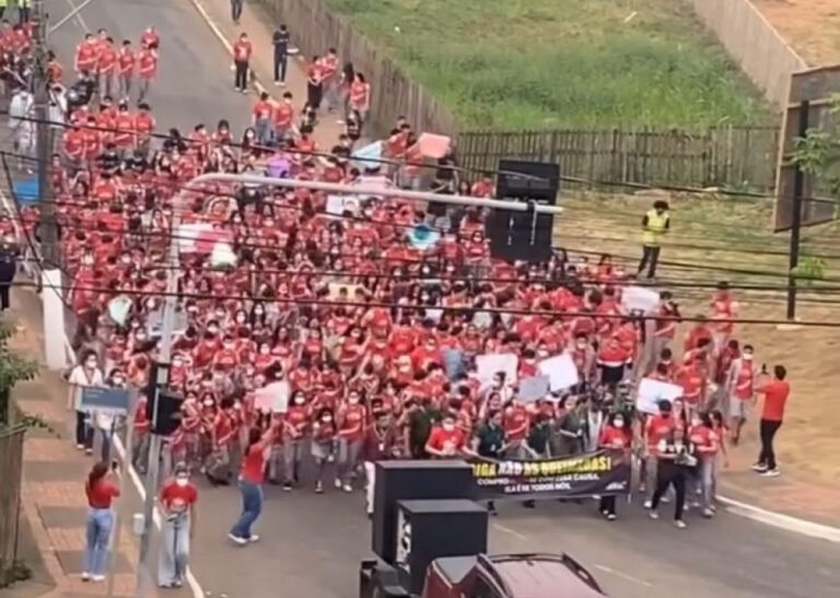 Um vídeo divulgado na página Click AC, mostra os alunos interditando parte da pista da Avenida Ceará, próximo ao colégio.