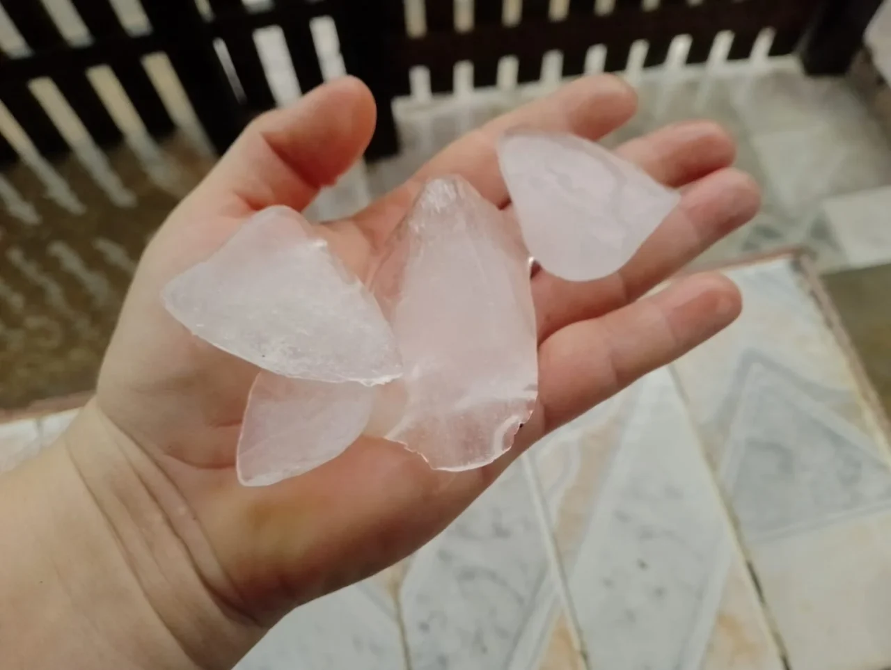Diante da cena incomum, os moradores fotografaram o granizo e as imagens estão sendo compartilhadas nas redes sociais.