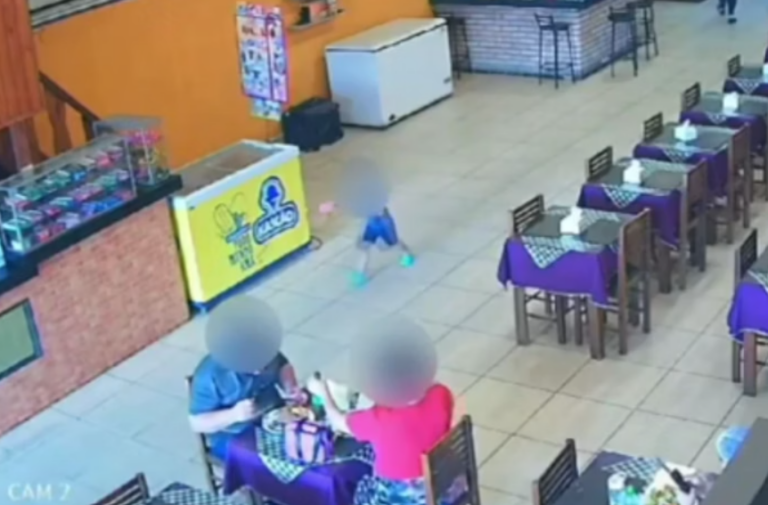 No vídeo é possível ver o menino andando, já solto de seu pai, pelo restaurante. O outro ângulo, mostra exatamente o momento em que ele sai correndo pela porta e vai direto para a rua. Diversas pessoas, tanto as que estavam dentro do estabelecimento, quanto outras na rua, saíram correndo atrás para tentar socorrer a criança.