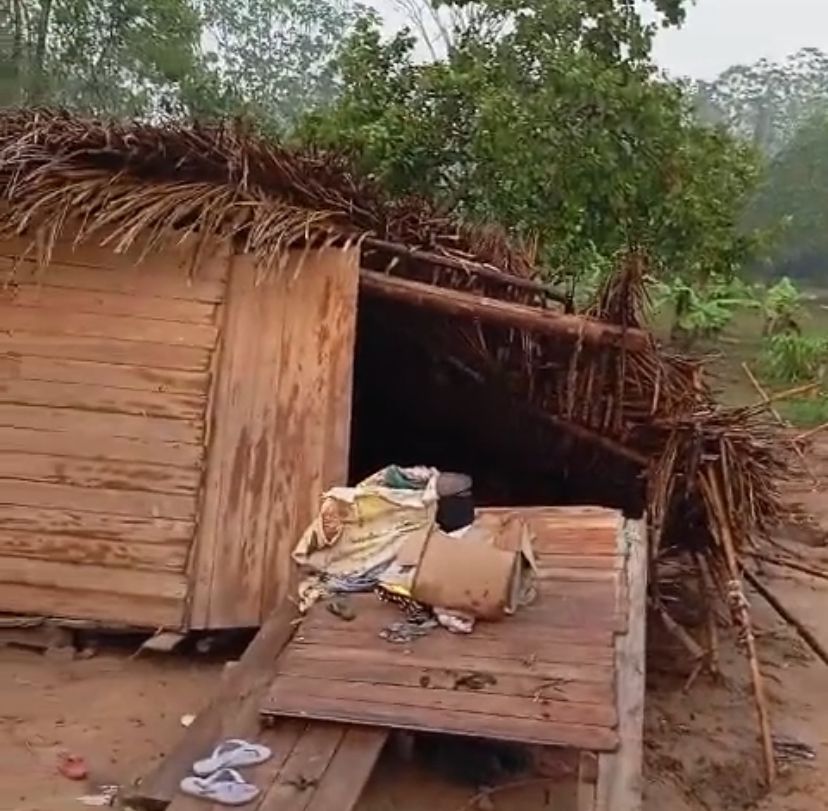 Os moradores da zona rural de Santa Rosa do Purus, no interior do Acre, passaram por momentos de aflição na noite desta quarta-feira (4) por conta de um forte temporal. Segundo relatos, o vento foi tão forte que chegou a derrubar duas casas que ficam localizadas em uma aldeia.