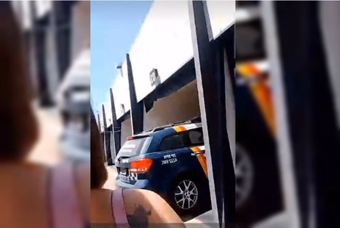 Quando caminhava para deixar o motel, a trans ressalta que participou de uma “festinha” com dois policiais militares. De fato, a travesti filmou que haviam duas viaturas dentro do motel.