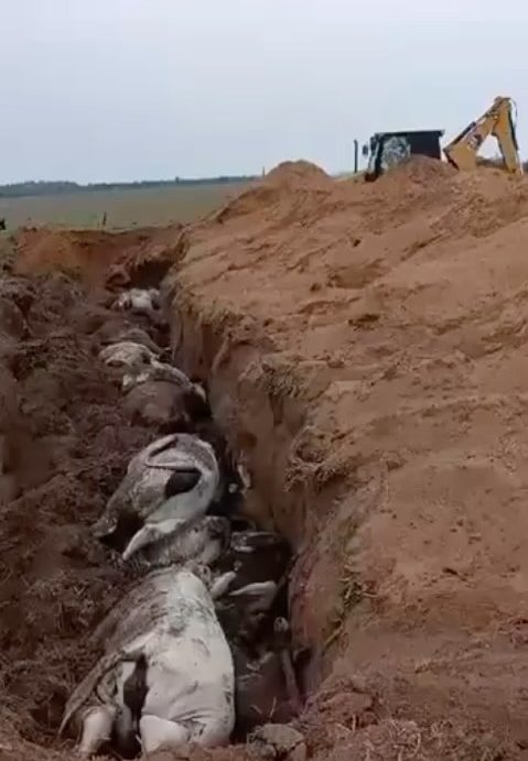 Novilhas são enterradas após morte causada por raio na Fazenda Cachoeira, em Parecis, Rondônia/Foto: Reprodução