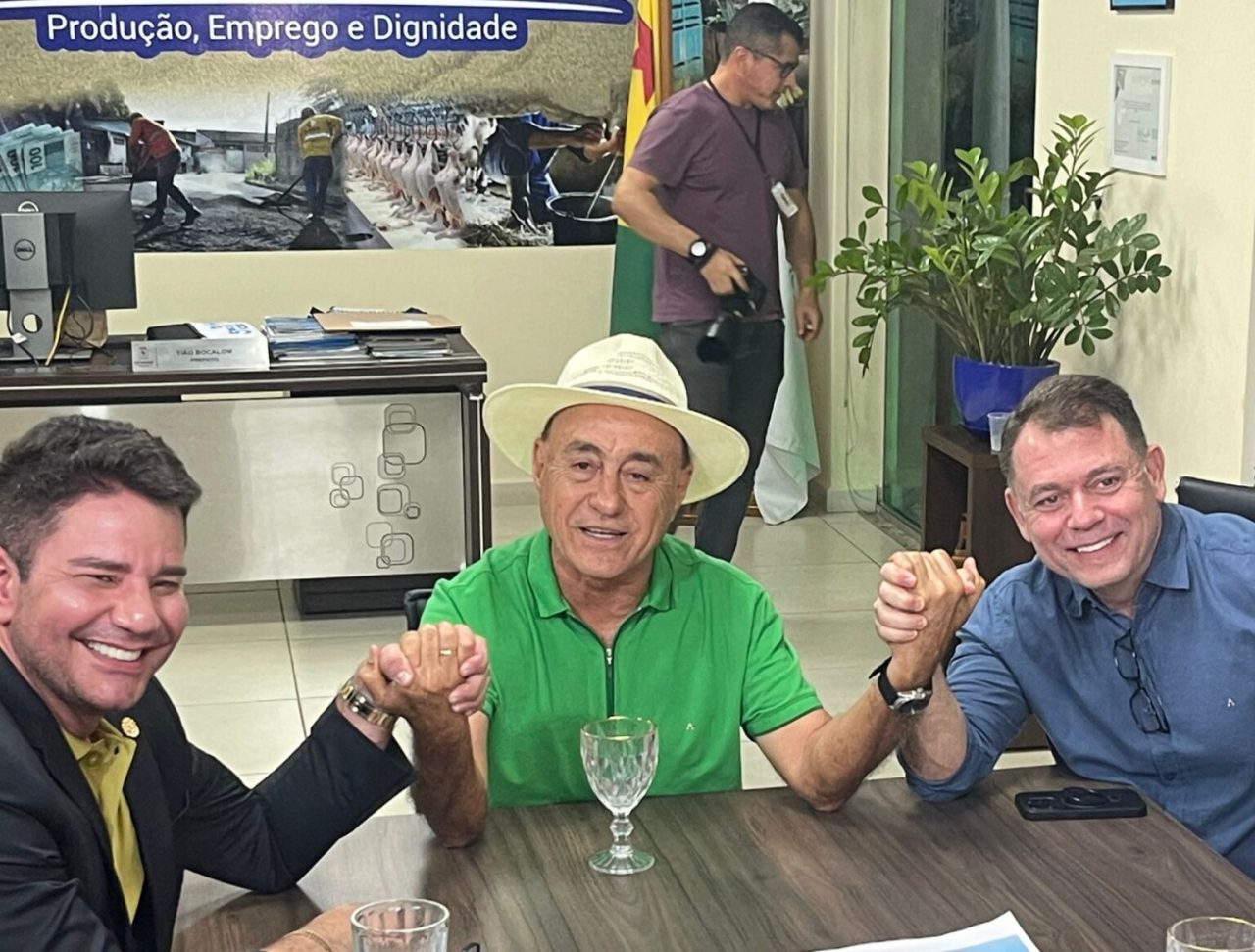 Gladson, Bocalom e Alysson em reunião na prefeitura/Foto: ContilNet